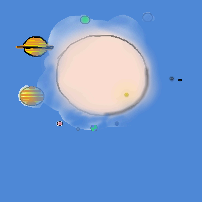 Don't be afraid to take advantage of the solid circle tool to get perfect circles. And the line and bezier tools. AVOID the fill tool unless your filling the entire canvas. It leaves behind little white specks that are hard to cover over. And try a black bg with little dots for stars, it would set the planets off nicely. Welcome.