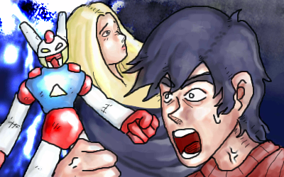 Imagine your favorite 70's-80's robot anime theme song singer (preferably Sasaki Isao, Kageyama Hironobu or MIO) wailing in the background and you'll get the right mood.