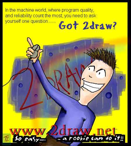 Got to thinking... most of the example posters had a bit of begging to them.... I just didn't think 2draw would need a type of begging within a poster.. like "we need you" or "please join" etc. A person only need stop by for 2 minutes to be hooked. To me, if there is begging going on within an ad, somethings wrong with it. So... here's a happy little poster to entice the "rookie / beginner" (such as myself), to at least check it out. I mean face it..... the applets and tools..... are so easy, a rookie can do it. :-P