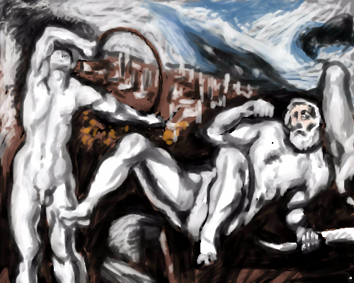 One of my favorite artist and painting ever to have lived! of course some elements were changed to fit the canvas so i could get the two main characters but anyway. I feel it needs more definition but oh well