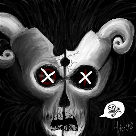It sort of reminds my of Ryuk from Death Note (the fuzzy things around the skull)... maybe its another death god?