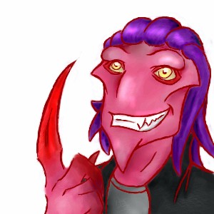 he looks happy -.-; isnt he supposed to look mean and evil like...its still cool :)