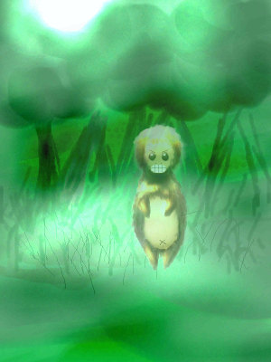 ghost monkey? i really like the background, but not really the small grasses. everything else is so soft, they look kinda off. sorry, you can pick on mine now!