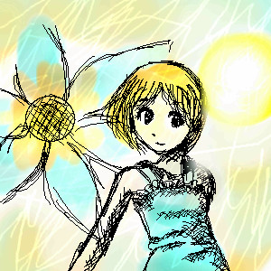I found this from a while ago so I colored with contrasting colors (orange and blue) with little detail. Not sure why I just wanted to but it looks a little strange so I might fix the background because the plain look I wanted doesn't work. : P