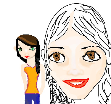 Hope you like it. I'm okay with it, I'm happy with Ann's hair because even though it's not very good it's better than most of the hair I've done before. Trish's hair is funny but not artistically very good. My sister liked Ann's like legs and her body disposition. If you zoom in you can see Ann's face really is quite rubbish, she has no eyes and only the slight hint of a nose, but don't zoom in :D ! Well you can zoom in to see the ID card and all.