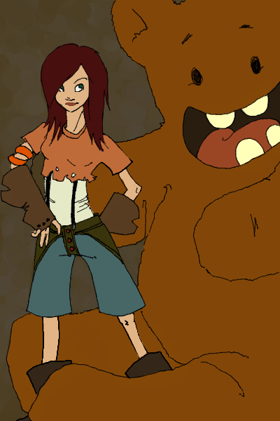 here she is all finished. the big boyee is based on my childhood stuffed teddy bear, boo boo. he doesn't have teeth tho.