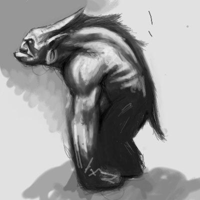 ooo Moosh this reminds me of Grendal from Beowulf, awesome troll/monster! like that you kept it blk and wht has that ink drawing look to it, nice work!