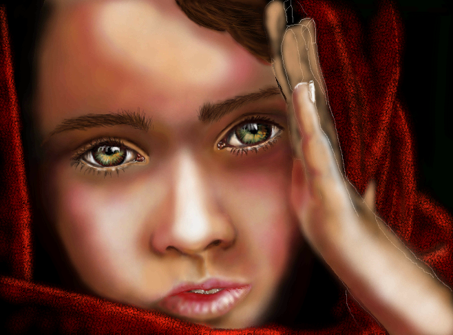 Those eyes are spectacular! They look as if they mirror the world she sees. She reminds me of that National Geographic girl. (lol, you can even google that photo with "that National Geographic girl). I know from the pose it isn't her. Love to see the ref (if there is one) from this one.