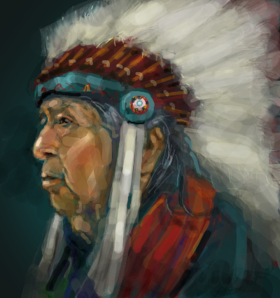 I am also of indian decent, Blackfoot and Cherokee. I adore this picture. I have always wanted to try an old indian cheif....there is no way I could follow this. Your style is wonderful...it looks just like an oil painting. Bravo!!