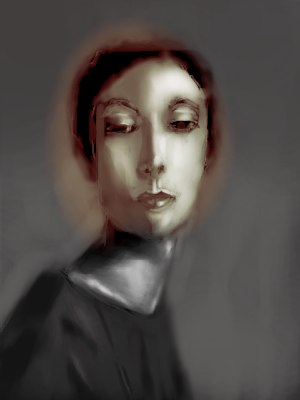 That bit of color and the glow around the head make this so interesting. I like this so far