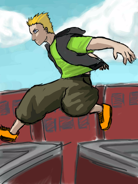 I keep forgetting what it is called what these guys do, acrobatics in the city. I love looking at it anyway. Eventho you hate lineart, the drawing will benefit from a little clean up here and there.
