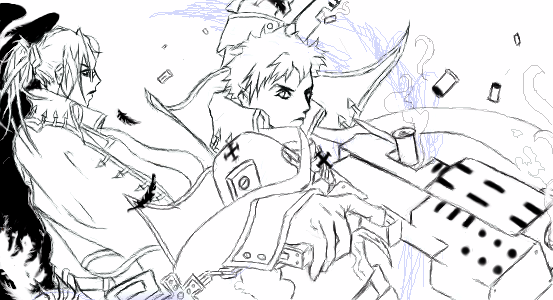 Oo the board has changed alot !....... I'm not really fealing the new lay out too much*shrugs*......so yea any hoo...HI ALL ! I'm still alive *waves* ^_^ hurm.......meby I should draw Abel's wepon in the bg......."pending"