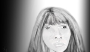 Hahah great title. .the only thing I see is that her eyes are too far apart and a little high.. other than that she looks fine!