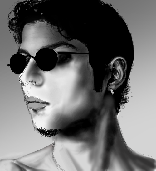 I used to have a pair of them sunglasses, i used to think i looked cool.But i think sunglasses are a bit gay to be honest, especially living in england when theres no need to wear them because of the weather.They should never be worn in doors or on the top of your head either. Great drawing though :P