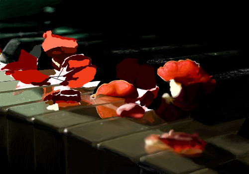 Everything about this is absolutely stunning; the lighting, the reflections, and even the textures are done perfectly. It seems like if I could touch it, the keys would be cold and smooth and the petals would be soft, just like they should be. Even the tiny dust specks are a subtle but lovely detail. You really went all out for this, and it shows.