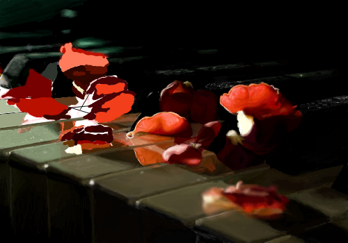 Everything about this is absolutely stunning; the lighting, the reflections, and even the textures are done perfectly. It seems like if I could touch it, the keys would be cold and smooth and the petals would be soft, just like they should be. Even the tiny dust specks are a subtle but lovely detail. You really went all out for this, and it shows.