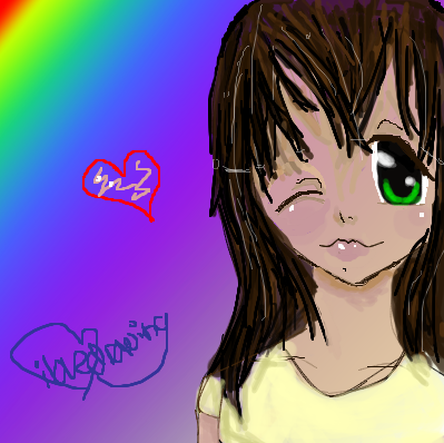 The closed eye is waaay too low. Makes her look (please don't be offended) mutated. Just moving it up higher and more horizontal. Lower the chin line, round out the other eye and make it a little smaller maybe. And make the upper head smaller. Work a little more on the hair by smoothing out the lines. And just cleaning up the lines but using a thinner brush on a low opacity and flow. Just suggestions as you asked. Over all cute.
