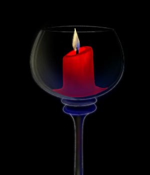 This is nicely done... all difficult elements, the glass, fire, the candle glow.. I like it!