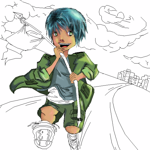Hey..this is cool drawing! I like how you did his hair! and the clouds look also cool!
