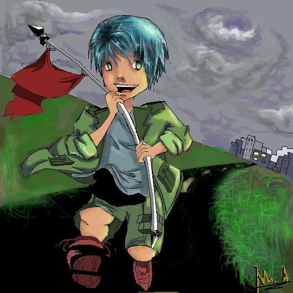 Hey..this is cool drawing! I like how you did his hair! and the clouds look also cool!
