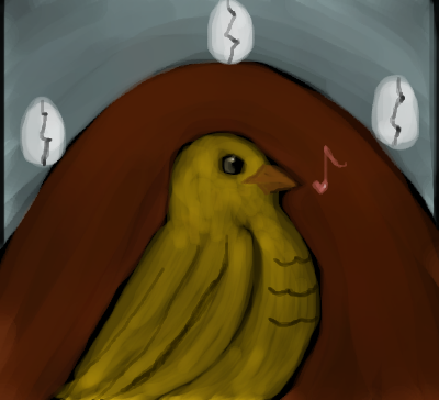 widdle birdie :0) She sang so high the vibrations cracked all her eggs!