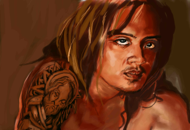 The tatoo is a fantastic detail in this piece of art... the man is exoctic ... the eyes haunting. Easy to imagine him as an actor. Beautiful art!